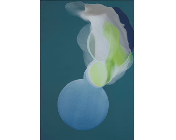그러나 홍수연의 작업방식은 오히려 그 반대로 향한다. 오히려 철저한 계산과 의도로 진행된다. 계산된 캔버스의 기울기, 아래층을 위층에 부유하게 하고 그 층이 또 다른 층에 부유하도록 조절된 물감의 양이 만들어내는 투명성. 그리고 이를 통해 획득되는 시간성. 이러한 요소들을 통해 하나의 층이 하나의 형태이면서 다음 형태의 잔상으로 존재한다. 일견 이러한 구조는 또 다른 형태로 인식될 수도 있다. 그러나 이러한 층들이 켜켜이 쌓이면서 화면 전체가 천천히 진화하는 유동적 이미지로 인식된다. 최소 단위로 분절시켜 그것을 규정하려 하여도, 그것은 또 다시 다른 지점을 향해 진화한다. 중첩과 겹침, 드러냄과 숨김, 즉 ‘층’ 이 아닌 ‘층들’을 통해 의미가 획득된다. 여기서 또 하나 중요한 것은 ‘층들’이 놓이는 위치이다. ‘층들’ 주변에는 넓은 ‘비어 있는 공간’이 있다. 이것은 ‘층들’이 특정 위치에 정박한 것이 아니라, 주변으로 확장될 수 있는, 그렇다고 무한하게 확장되지는 않는 미묘한 긴장감이 형성된다.