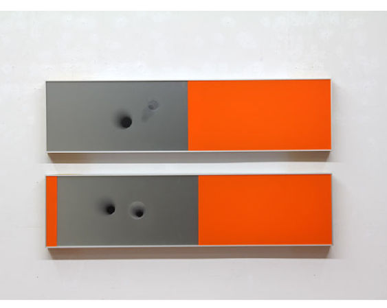 묽게 갠 물감의 용액이 스프레이 건에 의해 평평한 물체(objet)의 표면에 뿌려질 때, 미세한 물감의 입자들이 사뿐히(그러나 실제로는 공기의 흐름에 따라 아주 천천히, 때로는 춤을 추듯이) 내려앉아 표면에 정착하는 과정을 상상하는 일은 즐겁다. 하나의 색깔이 물체의 표면에 뿌려지고 그것이 건조되는 동안 기다려야 하며, 그렇게 20여 차례에 걸쳐 물감의 도포(塗布)가 반복되는 과정을 거쳐야 비로소 물감의 적층(積層)이 형성되는 것이다.